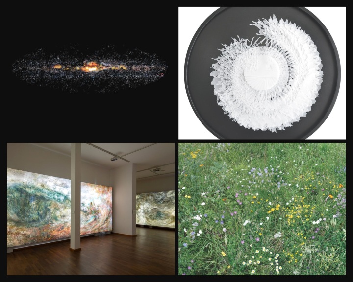 Dieses Angebot baut auf dem spielerisch entdeckenden Rundgang für jüngere Klassen auf und verbindet neugieriges Erkunden mit einer vertiefenden Auseinandersetzung. Für ältere Schüler richtet sich der Fokus zunehmend auf das genaue Hinsehen und Weiterdenken: auf Wachstum und Entstehen von naturbezogene und künstlerischen Prozessen – und darauf, welche Bedeutung das Zusammensetzen vieler einzelner Bilder für das Entstehen eines neuen Ganzen hat. Thematisch bewegt sich das Programm im Spannungsfeld von Kunst und Naturwissenschaft, eine Verbindung, die in einer Collagenwerkstatt kreativ aufgegriffen wird. Den Schwerpunkt bildet die praktische Arbeit: Aus vorhandenem Bildmaterial entwickeln die Schüler eigene Miniaturcollagen zum Kosmos Hiroyuki Masuyamas und setzen so das Gesehene gestalterisch um.